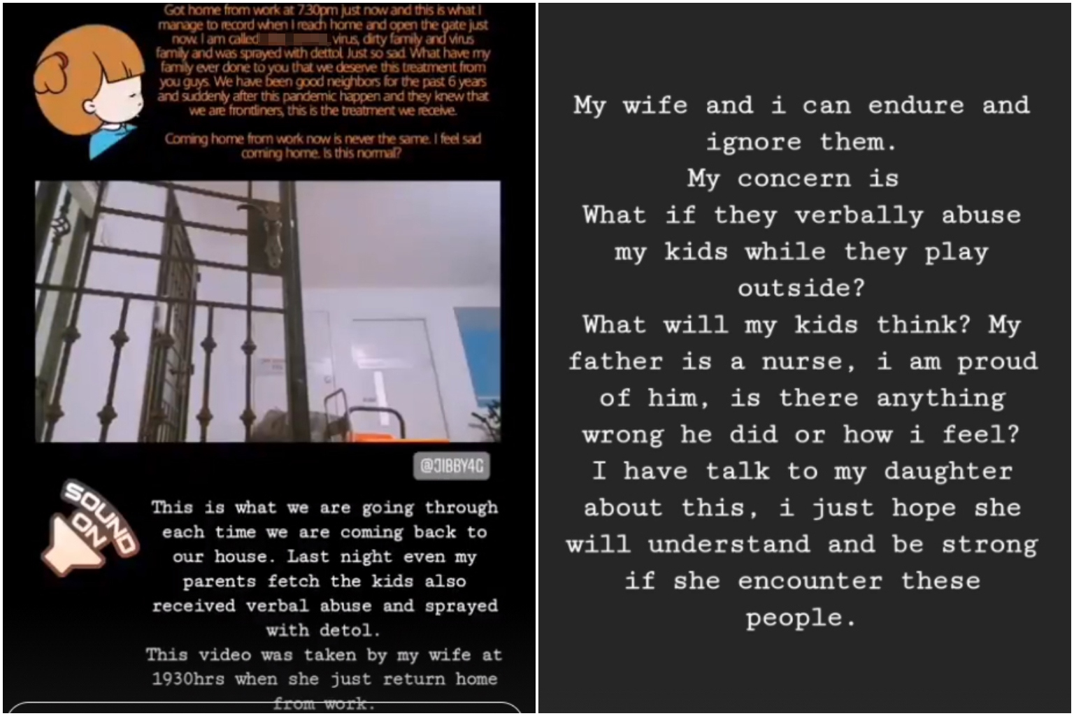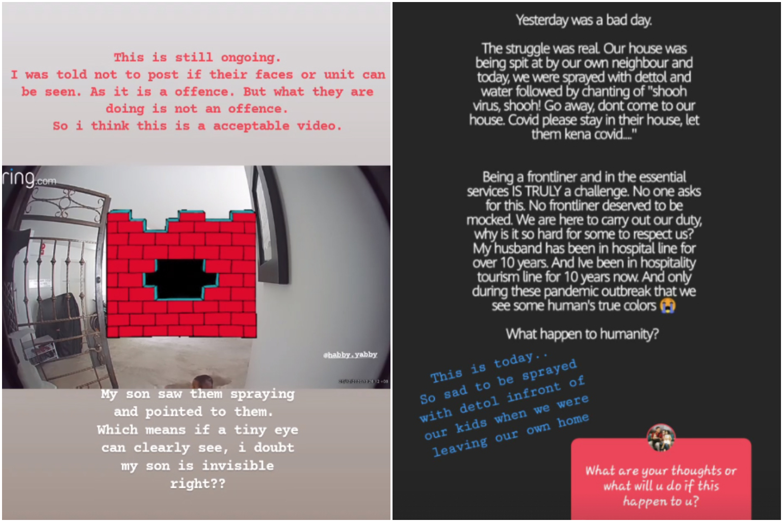 The police said they do not condone any behaviour that impacts the sense of safety and security in neighbourhoods, and urged members of the public to practise neighbourliness and work to overcome Covid-19 together.